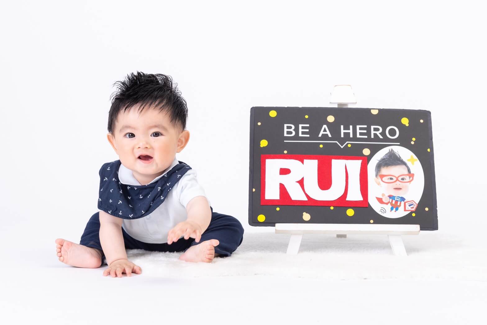 お子様の記念撮影用のボードを制作させて頂きました。布も用いています。