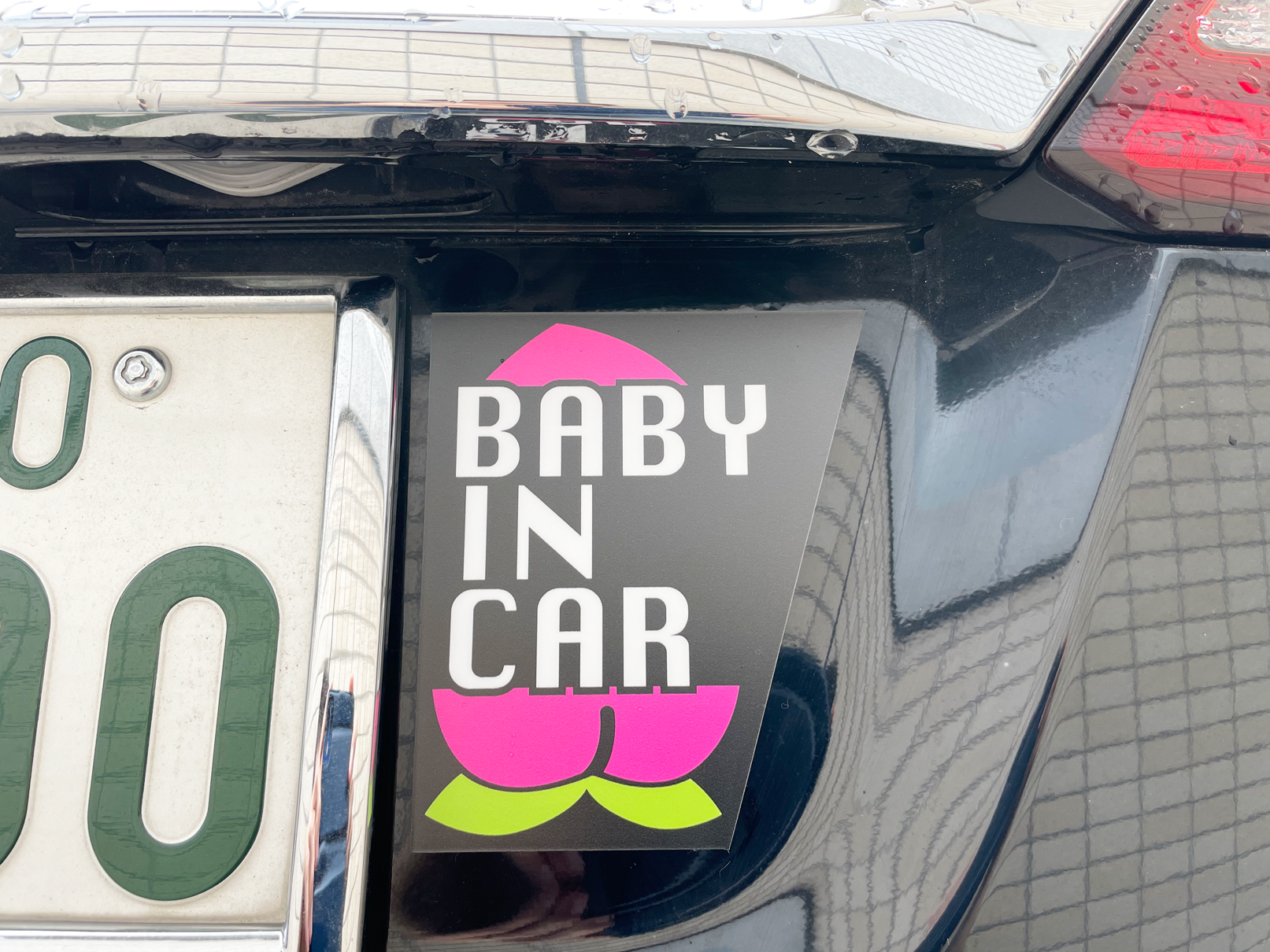 「BABY IN CAR」マグネットを制作しました。娘の名前に「桃」という字が含まれるので、桃をモチーフに作りました。今は車に貼ってます(^^)