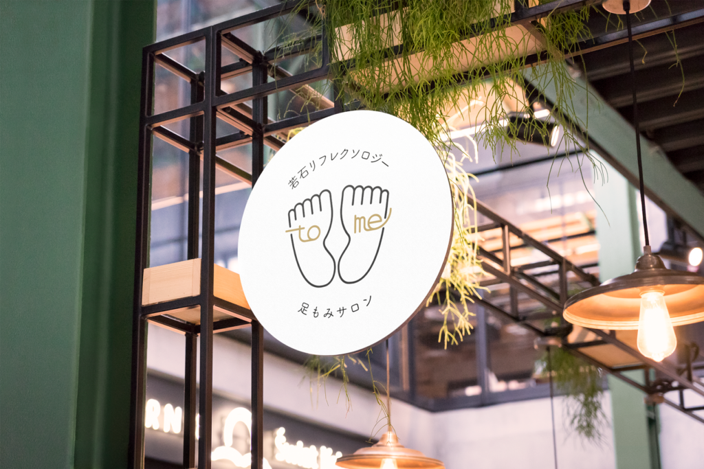 お客様は「毎日がんばってる“自分”に、ご自愛を」という想いをキャッチフレーズに、日々頑張られている方々に施術を行なっています。そんな想いを、「to me」をロゴの中心に配置することで強く表現しています。